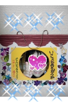 もらった。 敬老の日のプレゼント。保育園で作ったんやて。可愛い〜♪壁に吊れるん(^_^)v裏もみんなで撮った写真がある。仁はボルトポーズしてる!(オリンピックでボルトがしてたポーズ)ありがとう〜。でもこれ、1番喜ぶ大おばぁちゃんにあげよって事になった(*^_^*)写真撮影 じんいちろう。