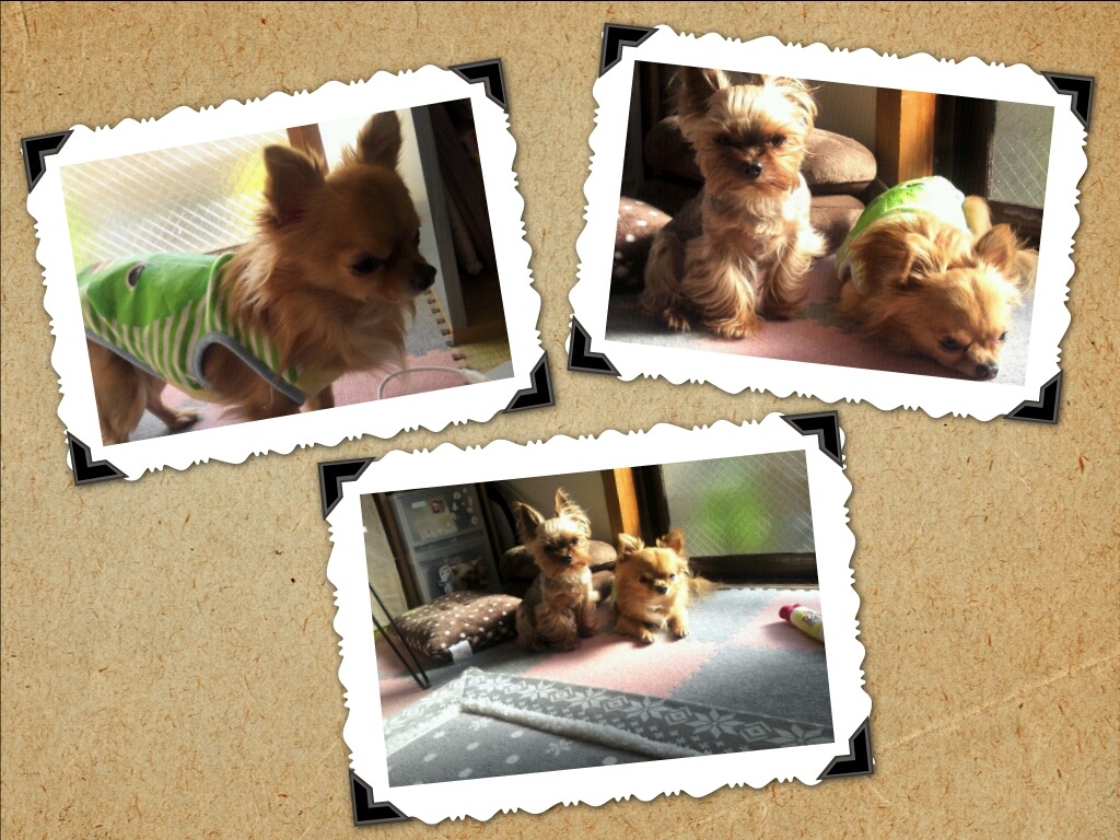 実家帰りの カイちゃん。土曜日から一泊。ほんわか日向ぼっこのくぅちんに近づいてきた。珍しい2ショット!うちのボスくぅちんは一人っ子気質のえらそうなカイちゃんが嫌い!めったにくっつかないもんね。(*^_^*)どっちもたんたんが見初めて家族になったんだよ。