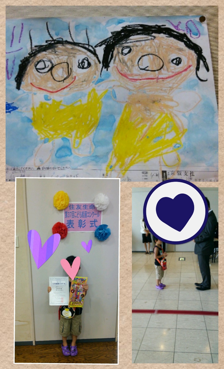 じんの誕生日 8月31日5才になったじん。保育園で書いた絵が表彰されて見てきた。「ほのぼの賞」なんて可愛い賞なん(*^_^*)表彰状くれた男(ひと)に「ジャニーズに入ればいいのに」って言われた仁さまに親バカ、ババァバカになった私たちでした。いい誕生日になったね!