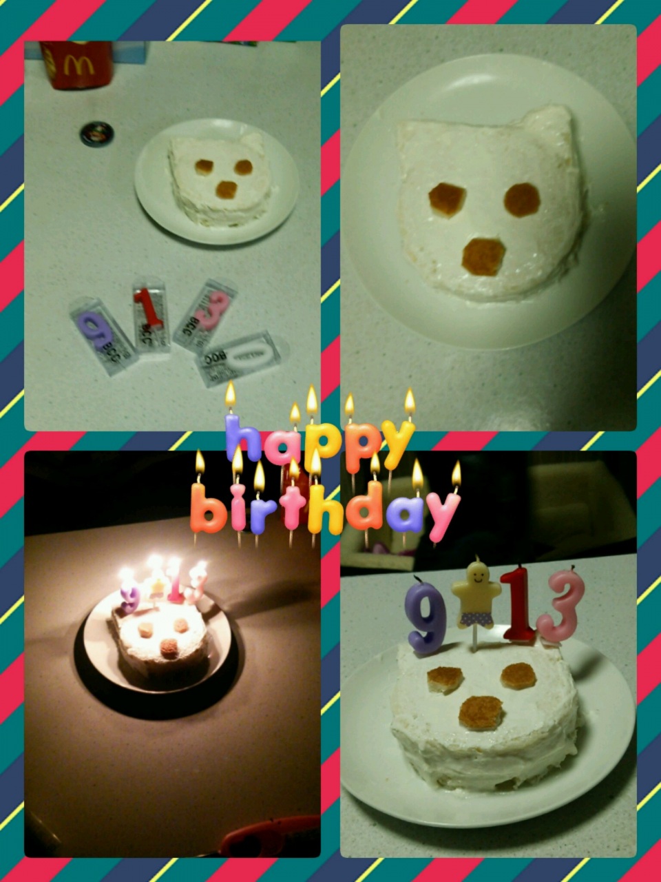 11月1日 三連休初日毎年恒例のうちのくぅとまいまいと長女んちのかいちゃんの合同誕生会。長女が作ったチワワのケーキ( ^ω^ )13さいのくぅと9さいのかいちゃん。ちゃんとくぅの分のろうそくも買ってきてくれた。くぅちんのお誕生会一応10月にしたんだけどね(*^。^*)ありがとぉ!そして11月1日ワンコの日生まれのかいちゃんオメデト!! ヽ(`・ω・´)ノ イェイ!!