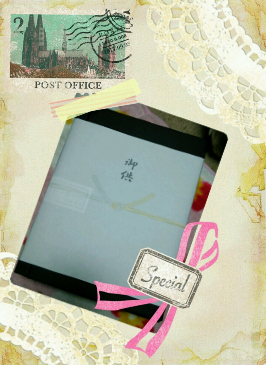 お供え 会社の友達が送ってきてくれました。母にしばらくの間お供えしてました。もちろん又会話もした。「かぁさん、こんなん送ってきてくれはったよ。」きっと母は「いやぁ。ありがとうって言うといてや」って言うてる( ^ω^ )いつも「いやぁ」って驚いて喜んで微笑んで可愛い人やった。いつも感謝してます。○○さん、有難うございます。