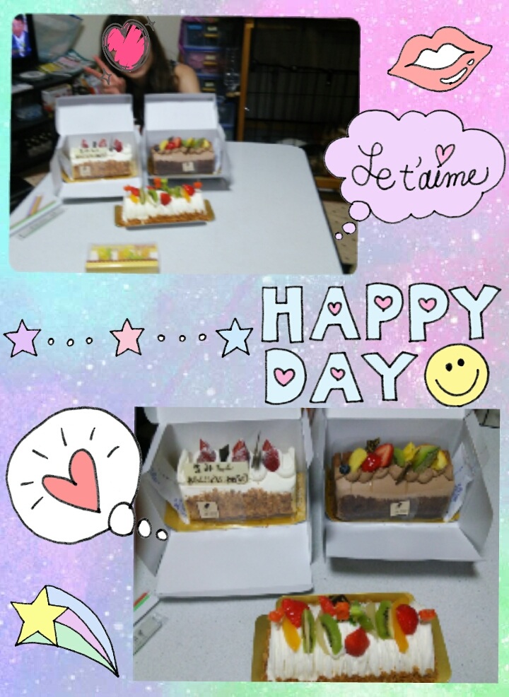 誕生日 何だか日付がバラバラだわ〜。でも残しておこう!娘3号の5月末の誕生日。ケーキ用意してたのに二つももらって帰ってきた。で、ケーキ3つに。我が家恒例のhappybirthdayの合唱。部屋真っ暗。。犬達は嫌がるんだけどなぁ。