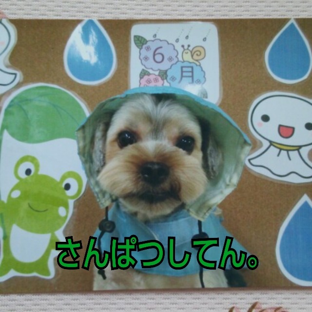 7月なのに6月のこと。 6月21日 日曜日だいちゃんさんぱつ〜。その月々で色んな写真撮ってくれる。でもこの写真には大ウケ(*≧艸≦)梅雨だからかっぱなのになんだか消防士さんみたい。被り物なんかしたことないのによそではおとなしくかぶっておりこうさんだね(笑)