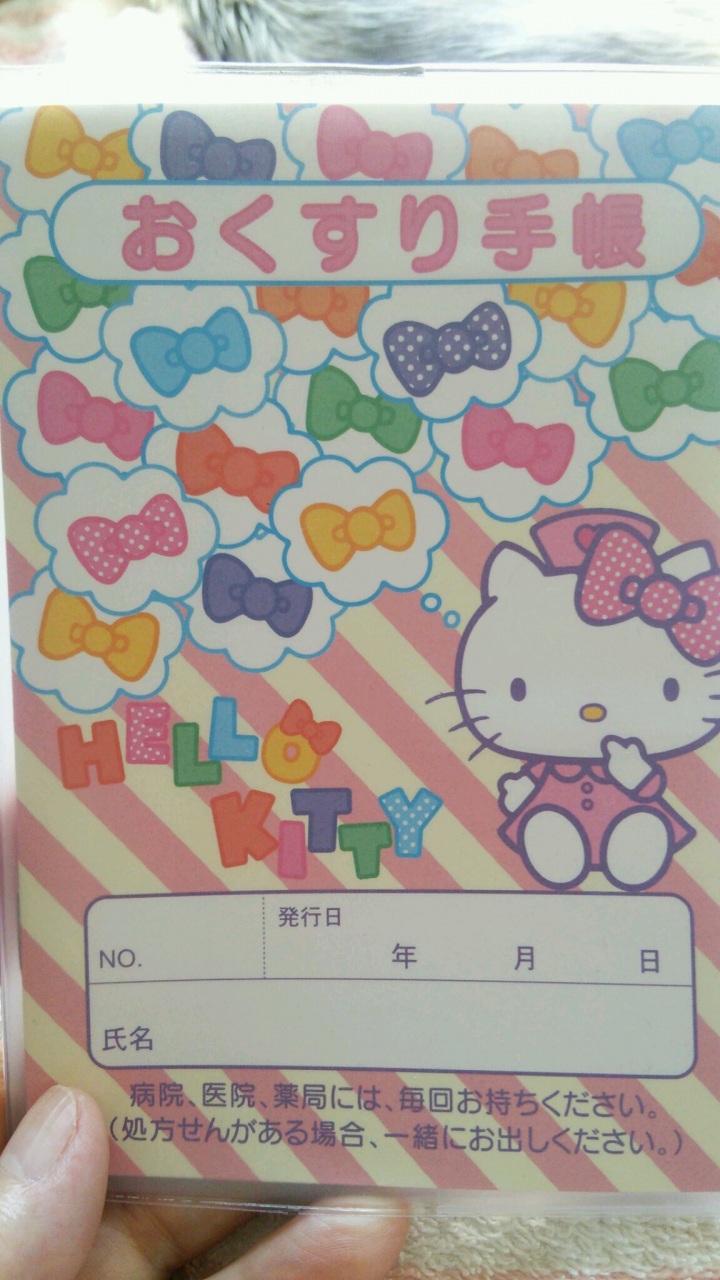 ただでは 6日の日曜日は仁の靴がちいさくなったって事でみんなでお買い物。でも私、へん!足が動かない。。だるい!もう早く帰りたい!で、夜あまりの寒気に熱測ったら39度近くあって…延々と水曜日まであがったりさがったり…2回目行った病院の処方箋もらいに行った先でキティちゃんのお薬手帳もらった。「あれください」って言うてもらった。ただでは起きないおばちゃんの私。金曜日から仕事に復活。有給なくなったなぁ。。