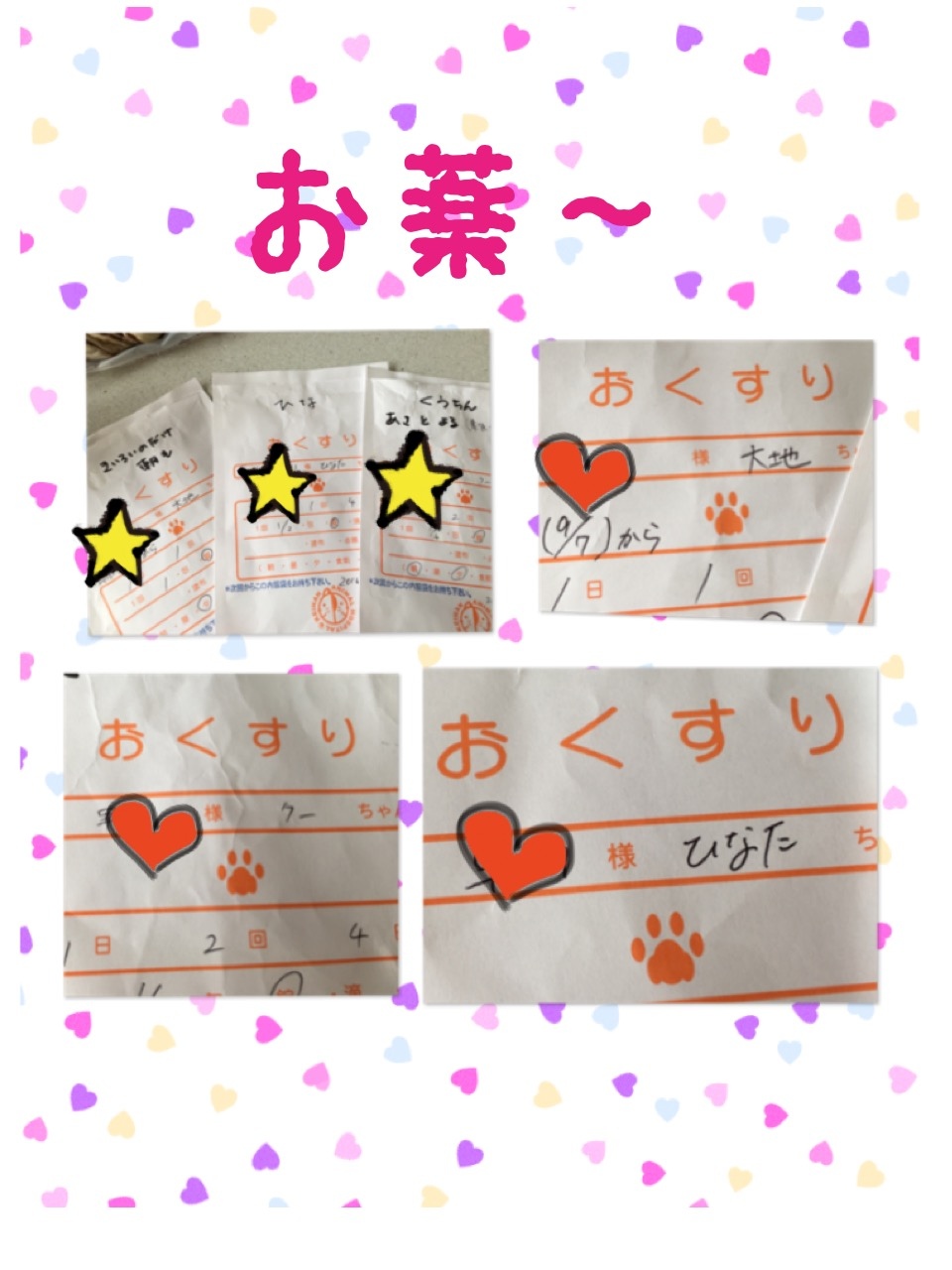 下痢の嵐 9月に入ってからの我が家は・・・日々病院通い。。くぅの下痢にはじまって大ちゃん。そしてそんな時ひなが足あげないで歩いて。また病院!み〜んなお薬生活。ここでぶっちが元気なのがめちゃくちゃ助かる!ありがとね。ぶっち。余談・・・久々でくぅを病院へそしたらぶっち担当の先生が「来月で15さいですか〜?」って耳はとおくなって大変やけどまだまだ元気なくぅ様です(*^^*)くぅが診察室から出たらそこにヨーキーちゃんが。しんどいの治ればいいね。み〜んな!