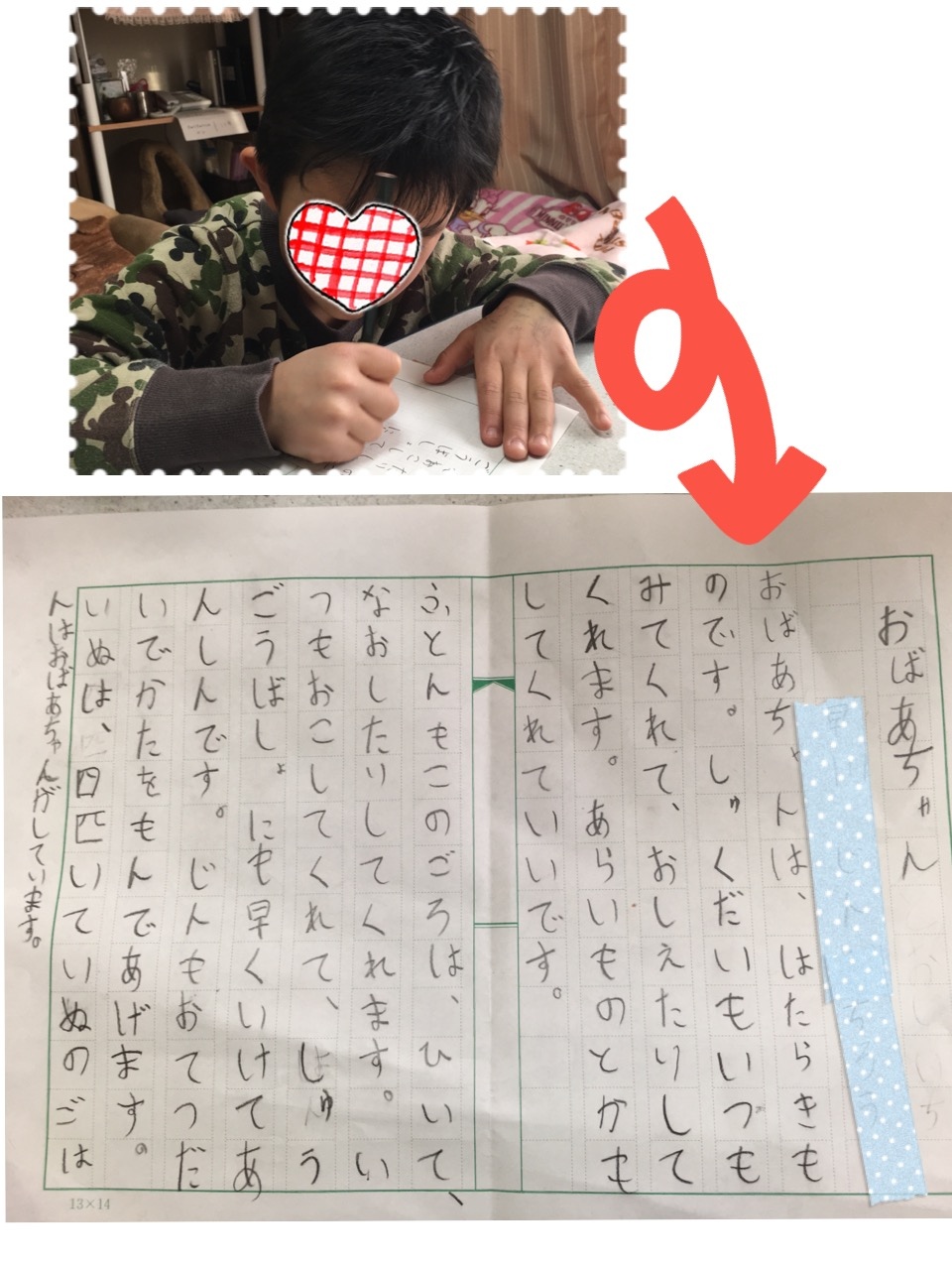 3月10日 一生懸命書いてるものは・・・宿題の作文。題名はなんとおばぁちゃん。誰のこと?私やった。ばぁばって言われるとかわいいけどおばぁちゃんはないなぁ〜!だけど作文の内容はまるで脅迫して書かしたよーな内容でびっくり。。また宝物ふ〜えた。