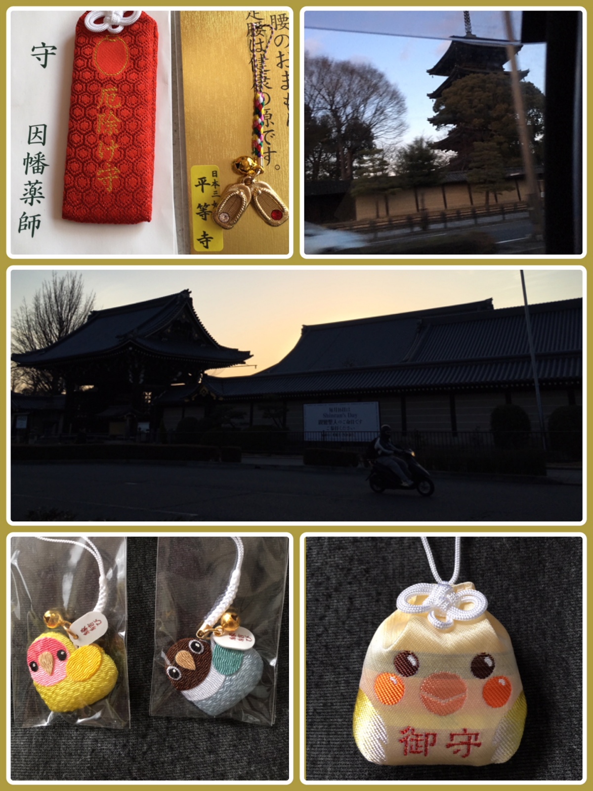 1月20日 京都の平等寺へ。癌封じのお寺みたい・・・次女まいまいがどうしても鳥さんのお守りがほしいって。私も厄除けのお守りと足腰のお守り授かってきた。メンバー 仁さん、まいまい私、MD。。車で行ってそこだけやったけど久々の京都はやっぱりいい感じ!!